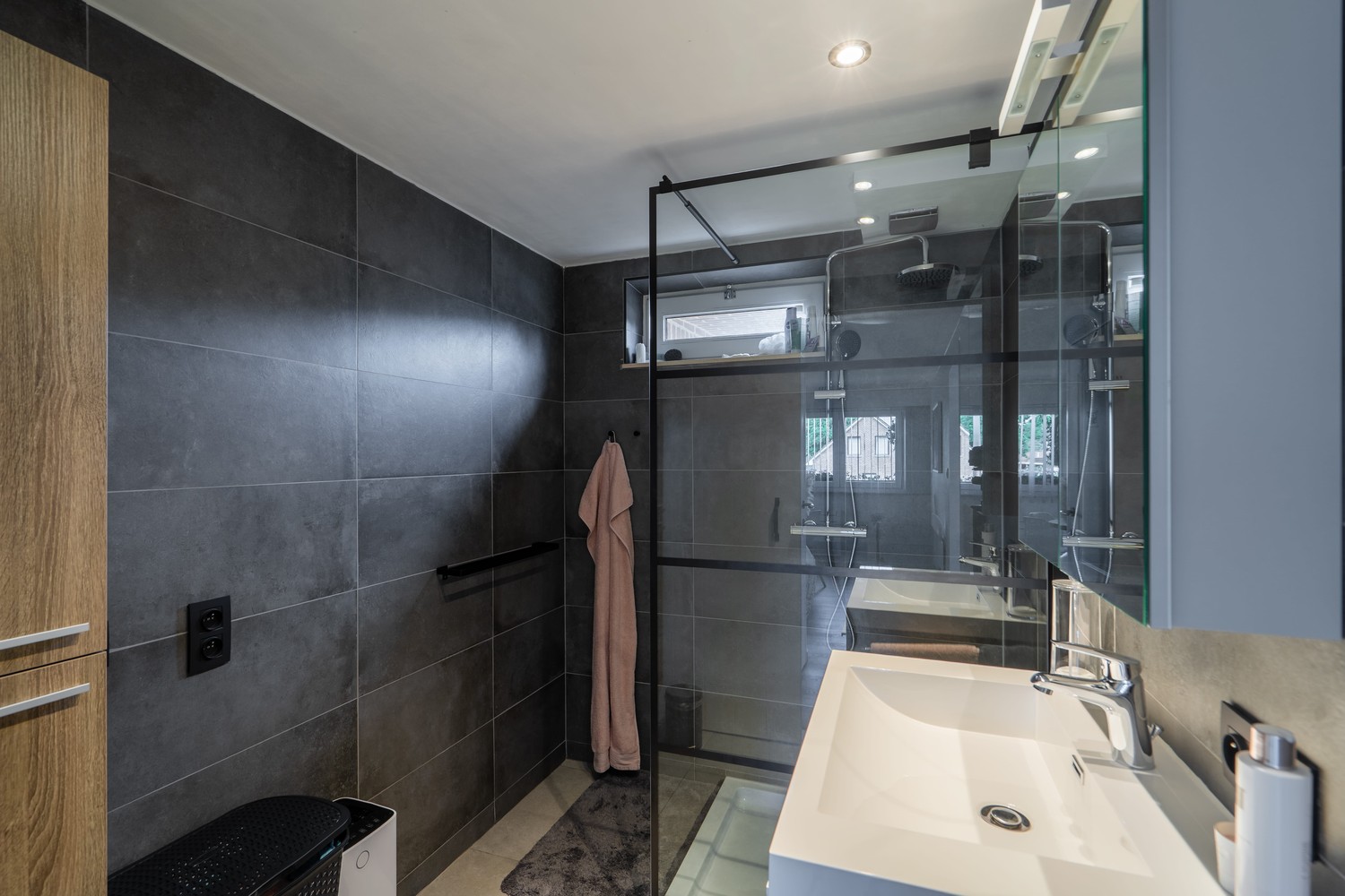 Dankzij de kwalitatieve maatwerkkasten van Camber in de inkomhal, slaapkamer en wasplaats is elke vierkante meter maximaal benut, wat resulteert in een uitzonderlijke hoeveelheid opbergruimte en een zeer ruimtelijk gevoel.