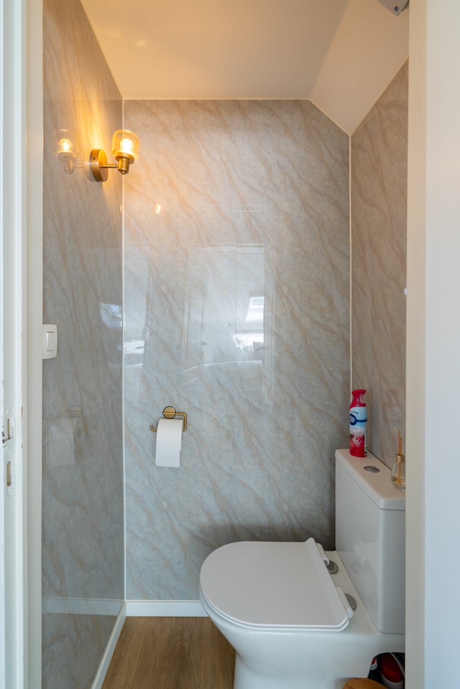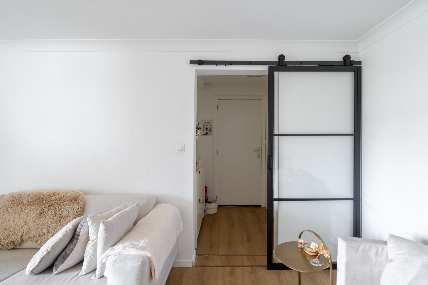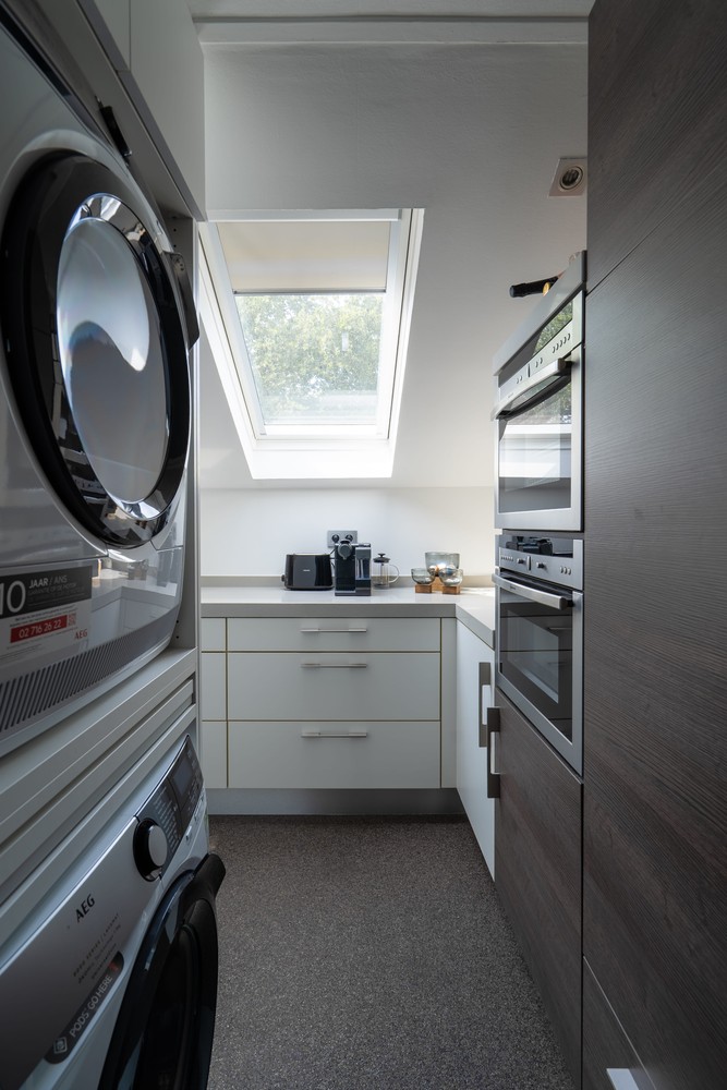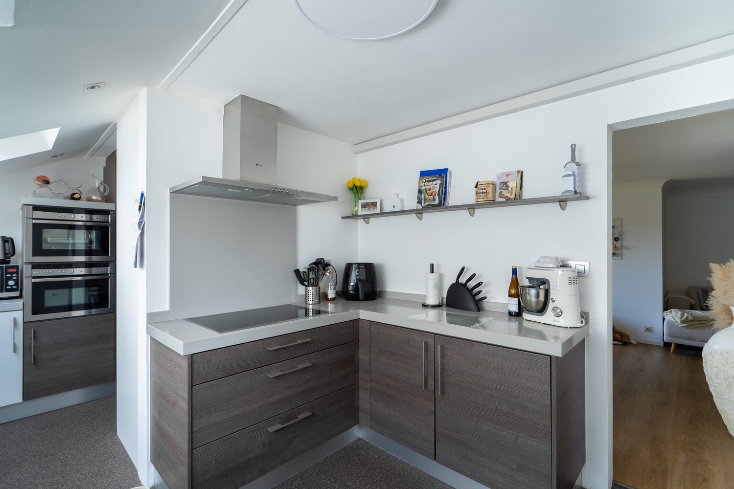 Zeer grote keuken, mooie leefruimte, ruime slaapkamer met ingebouwde kasten, zeer luxueus afgewerkte badkamer, hal met ingebouwde kast..