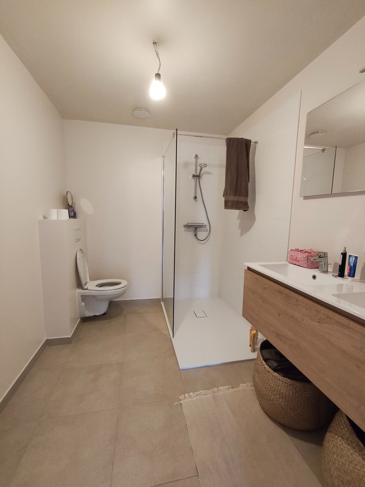Zeer mooi, ruim en gemeubeld 3 slpk app met groot terras en autostaanplaats. Het appartement wordt gemeubeld verhuurd, zeer mooi afgewerkt, verlichting en gordijnen blijven hangen. Rustig gelegen op 8 min wandelen vd stad, bus vlak voor de deur. Fietsenstalling voorzien. bezoekersparkings vlak naast de blok.